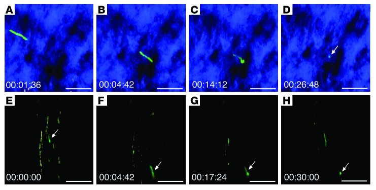 Anyway, for some reason, these researchers didn’t want to use the C3H mice for this study, and they decided to use the Myd88-/- mice, who develop overwhelming infections. They also used a WT strain of mouse (which is not missing Myd88) for the sake of comparison. They infected both types of mice, and then they treated some of them with Doxycycline (through their water supply) and others with Ceftriaxone (via subcutaneous injection). Interestingly, they showed that after one day of Ceftriaxone therapy, they could kill all of the Borrelia. They also used an interesting microscopic technique which allows one to look real-time at tissue and watch an organism to see what it does. By cutting down to a mouse’s tendon, they can see what’s going on down there.